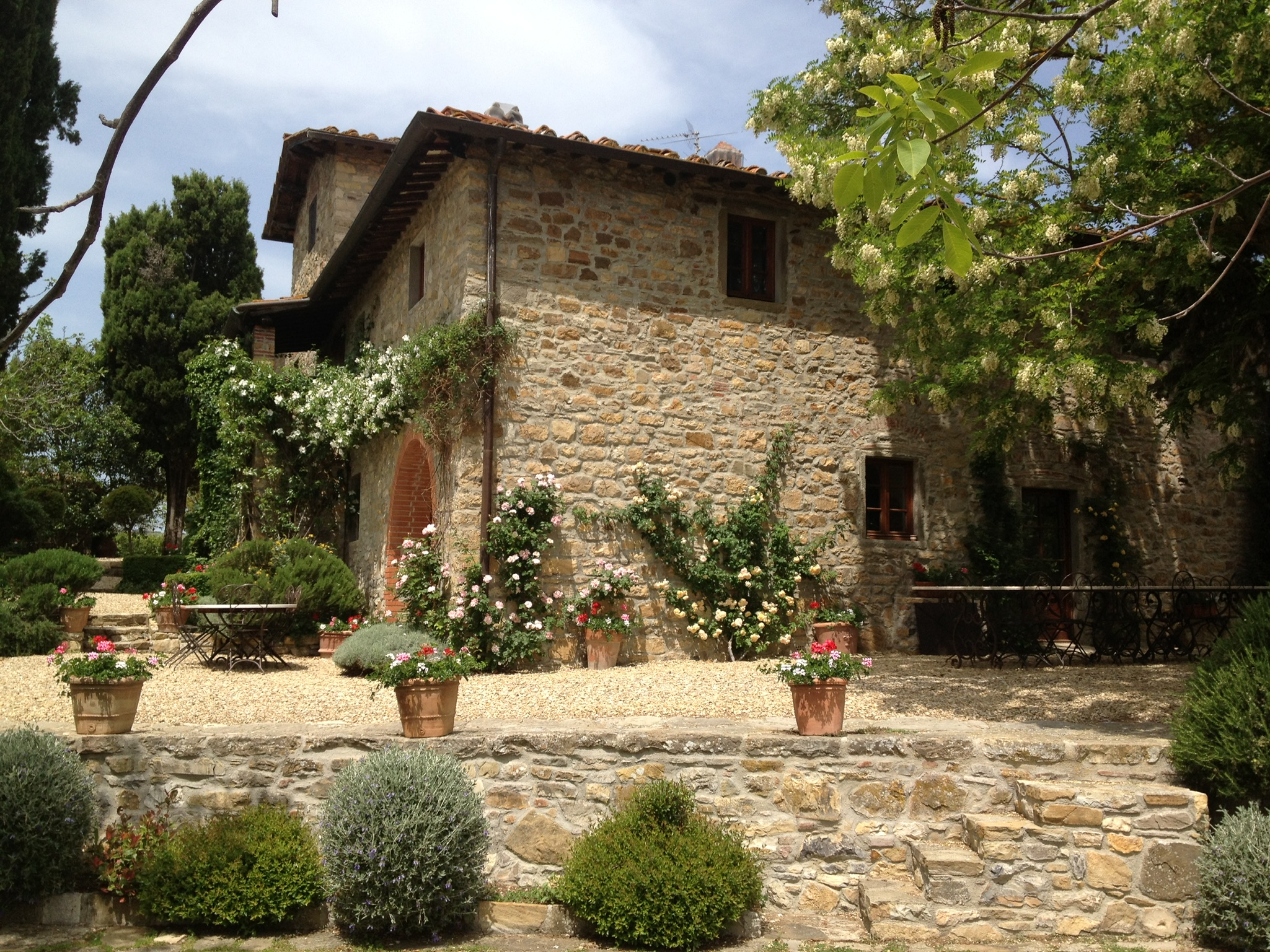 Zwischen alten Zypressen liegt ein Naturstein-Plateau: der Zypressengarten. Eine Bühne im Grünen für lange Tafeln, Gespräche, Feiern oder stille Momente.
